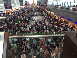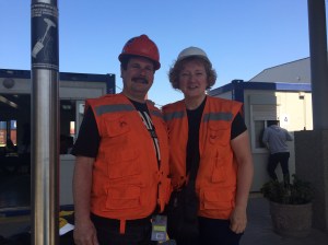 Nur zwei Blöcke hinter unserem Hotel haben wir uns am Mittwoch früh um 9 Uhr bei José Maria unserer Zollagentin von InTime eingefunden. Dort haben wir auch Christin und Hans aus St.Pölten kennengelernt, die bereits alle Angaben zu ihrer 1150R gemacht hatten, so das Maria sich gleich unserer Daten angenehmen konnte. Gemeinsam sind wir dann zum Zollamt gelaufen auch nur ein paar Blöcke entfernt. Nach unzähligen Stempeln auf allen Dokumenten, war Maria noch so nett, für uns ein Taxi zu organisieren, damit wir alle zusammen zu den Lagerhäusern raus fahren konnten, um unsere Motorräder abzuholen. Nach der zweiten Lagerhalle und dem vierten Blick unter riesige schwarze Planen, haben wir unsere beiden dann endlich entdeckt. Keinen einzigen Kratzer, aber mit dem Klebestyropor, mit dem alle Maschinen und Koffer im Container gesichtert werden, haben wir sicher noch eine Weile zu tun. Ein freundlicher Lagerarbeiter wollte uns für Rüdigers Verkleidung schon sein Cuttermesser anbieten… Jeder von uns musste nur einen Koffer öffnen und da es dort nur unsere alten Moppedstiefel, Helme, Handschuhe und ein wenig Equipment zu sehen gab, war auch das schnell erledigt. Nach dem die Batterien wieder angeschlossen waren, der langersehnte Knopfdruck… springen beide auf Anhieb an? Fast… die 1200er hatte erst etwas Zündschwierigkeiten, die 800er wollte gleich los 😉 – schnell noch im nächsten Bürocontainer weitere Dokumente in der x-ten Variante kopieren und mit weiteren Stempeln versehen lassen, dann konnte es los gehen. Die erste Tankstelle gleich unmittelbar vor dem Containergelände. Alles in allem hat der Zollvorgang etwa 4 Stunden gedauert, dann standen wir aber auch schon auf dem Parkdeck unseres Hotels.
